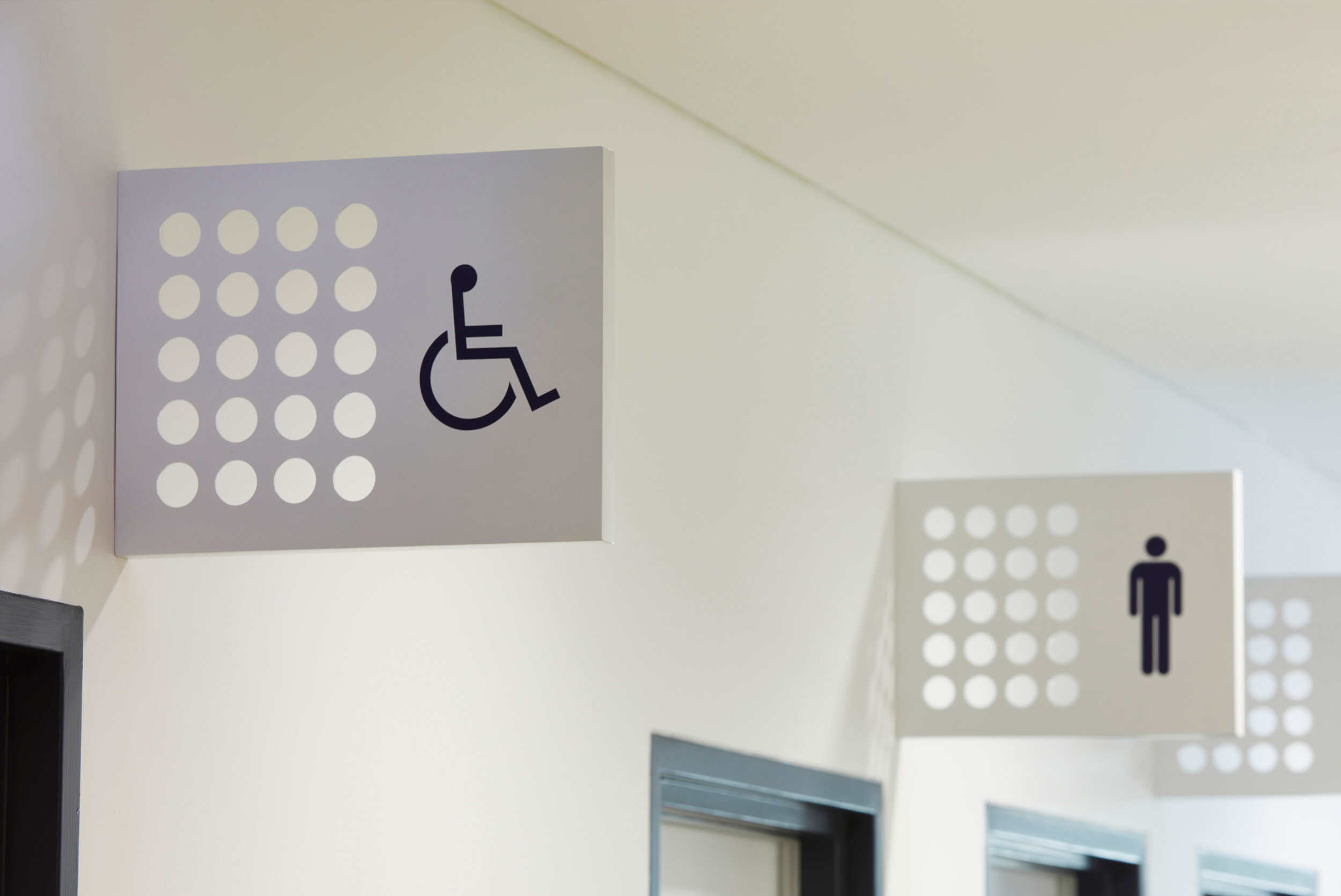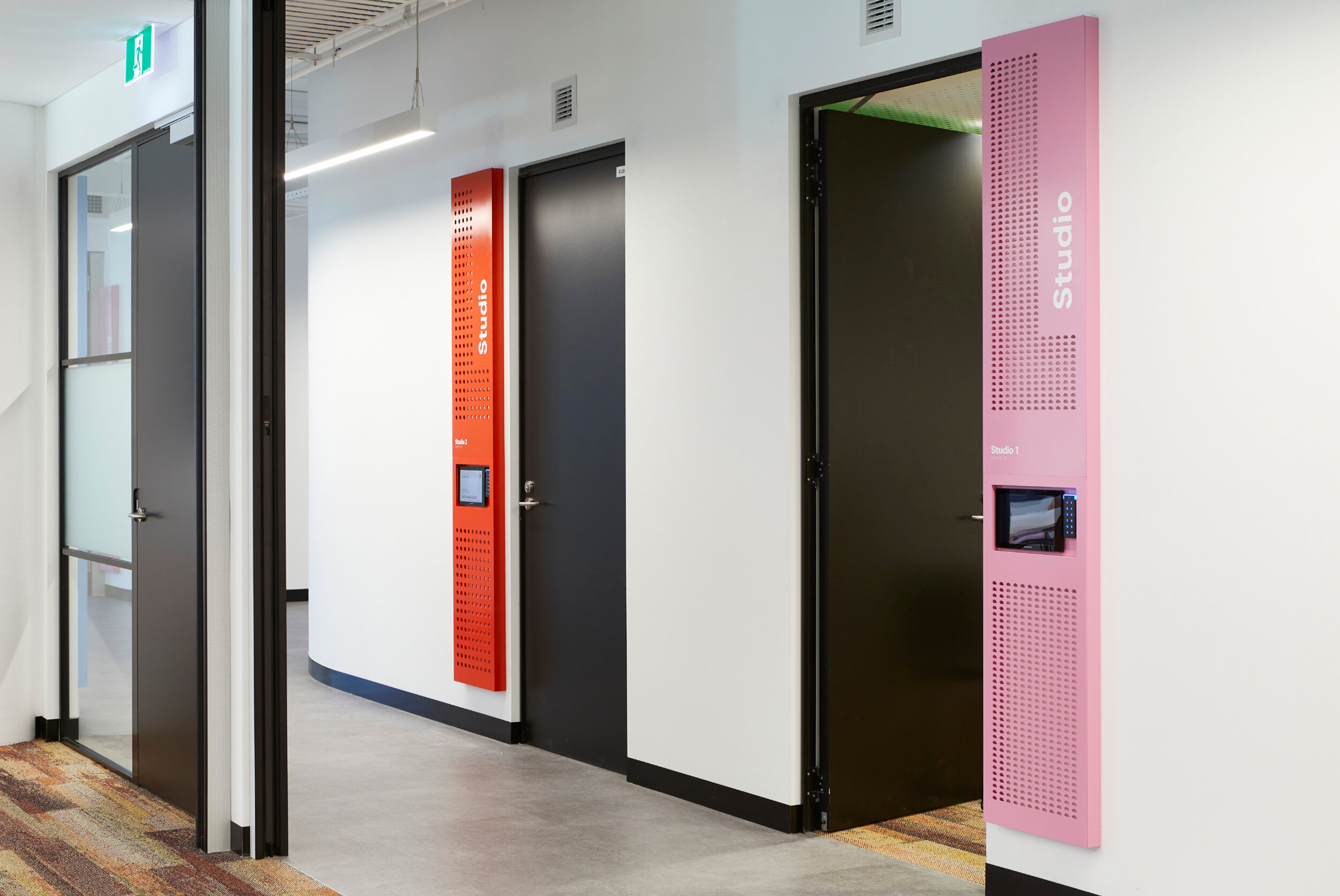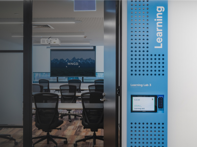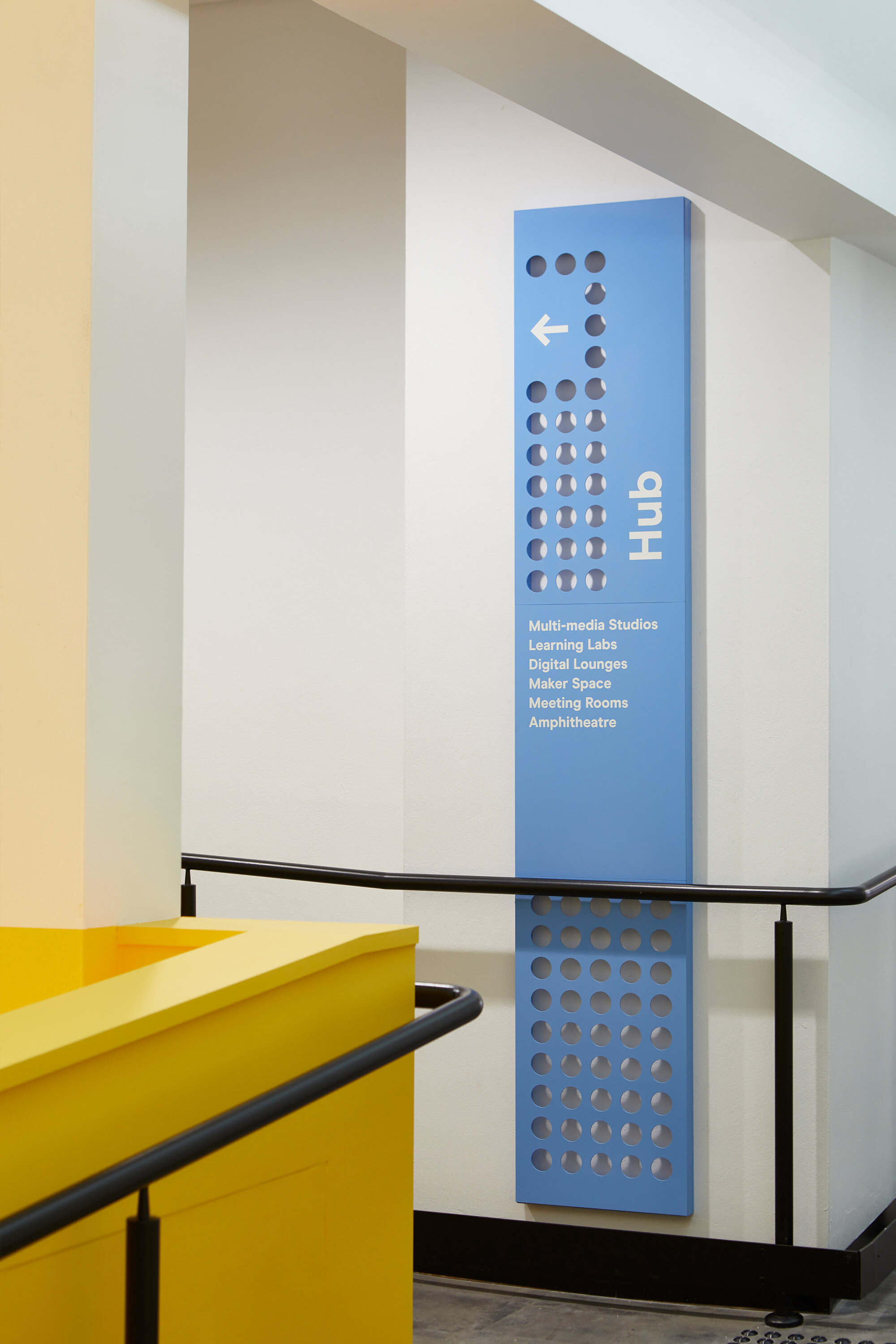 CITIZEN设计团队采用明亮的品牌配色方案,赋予场所活力。标牌上圆圈镂空的设计灵感来源于品牌logo,使标牌具有层次感,反映了品牌文化。标牌集成了视听和安全设备,使进入房间的过程变得轻松高效。
