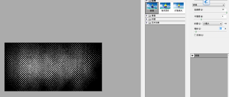 3.滤镜-扭曲-玻璃(数值仅作参考,自己做图的时候还要试情况字体调整,大概调成图左的样子就好)