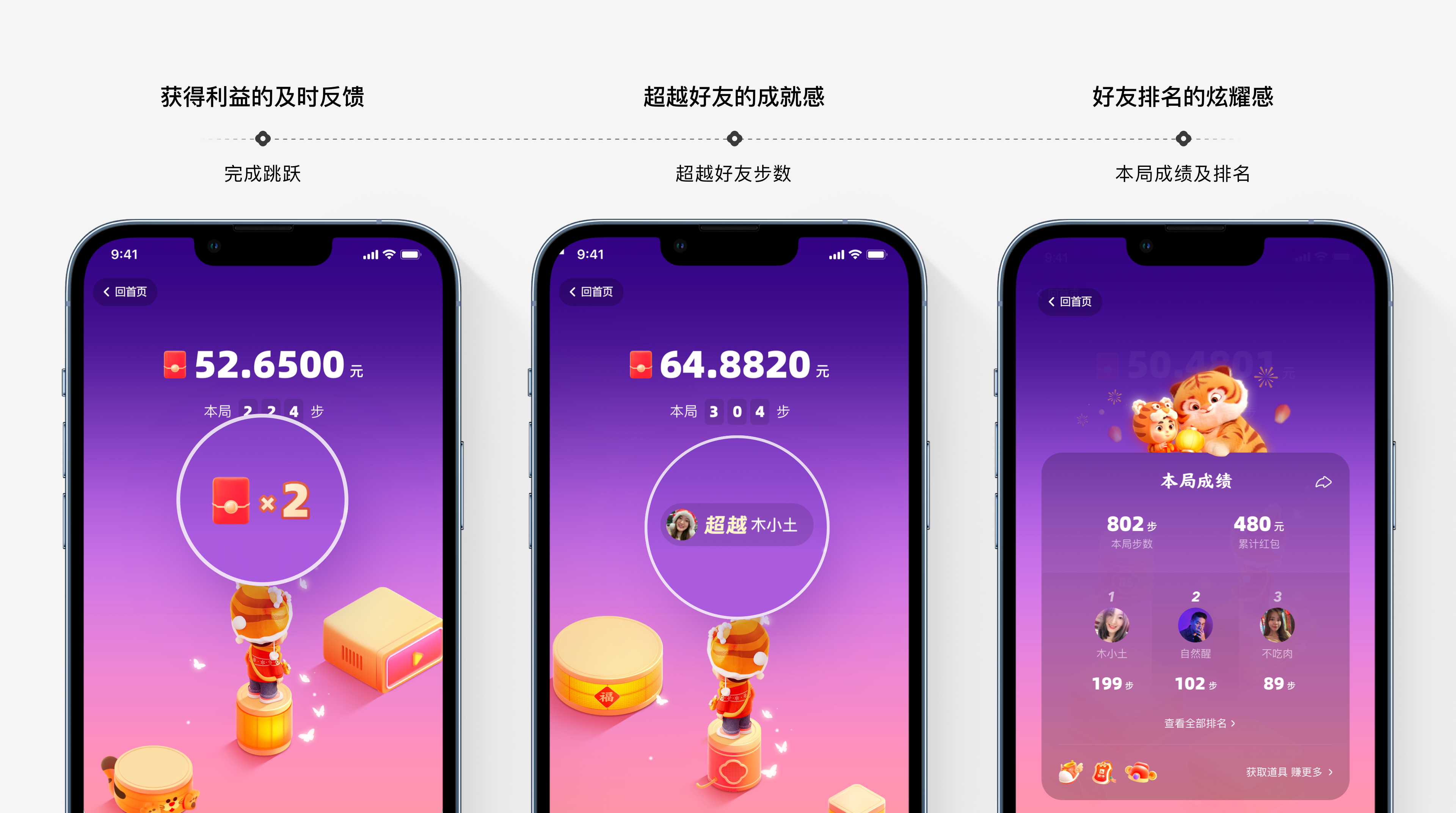 用户参与活动的绝大多数理由是来拿红包,如何使会场的“钱显得更多”,让用户有持续参与的动力,也是我们需要在动效设计时考虑的。