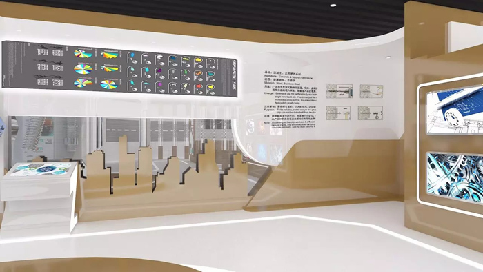 郑州展厅设计之产品展厅定位,展厅不管大小都有自己的黄金陈列点,黄金陈列点就是让参观者进入展厅后,习惯性的目光审视焦点,这个区域氛围的营造和产品的陈列技巧,决定展厅能不能给参观者心中留下深刻的印象,黄金区域色彩和灯光配置目的是利用不同灯光语言做辅助,营造当下时尚的浓郁氛围色彩,入口区域氛围营造,通过造型景观、人工渲染等方式来达到目的,入口区域的造型景观可根据风格定位布置营造,造型景观是展厅设计的延伸,不能喧宾夺主。