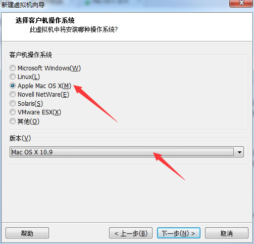 接下来选择操作系统,恩哼,选mac OS,版本选择Mac OS X 10.9即可。下一步。