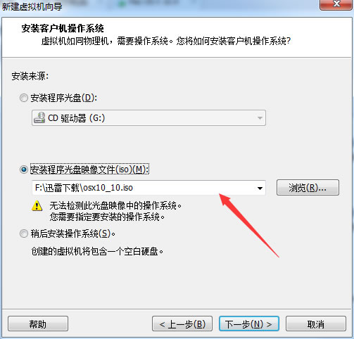 在这个界面选择刚才解压的iso文件,无视下面的警告。然后接着下一步