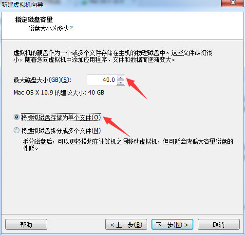 设定磁盘大小,静电推荐用默认的40GB,如果你的磁盘不够用,那么可以选择稍小一点,但建议最好不要小于20G。