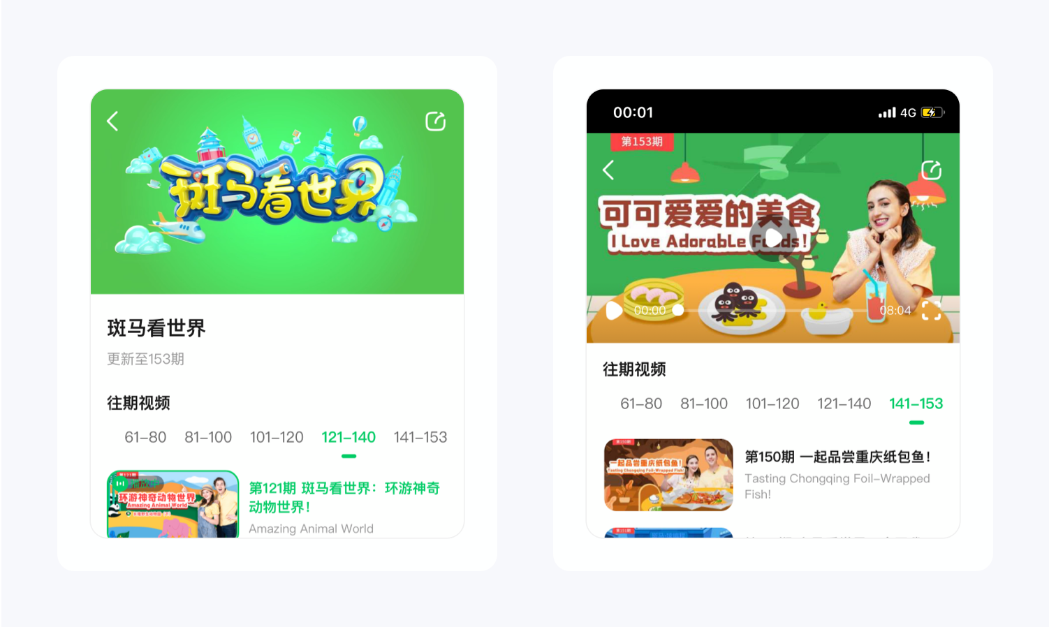「看世界」是斑马的原创栏目,内容题材丰富,有美食、旅游、科学、运动等,核心的卖点是通过英语课程的几位国外老师以英语视频讲解的形式带着小朋友边看边学,既能增强英语语感,也能增长小朋友的见识。其次视频的策划、出品都非常优质,这不仅可以提高用户留存率,还能引流传播,在腾讯视频等视频网站都能查看部分视频,极大提高了斑马AI的知名度和曝光度。