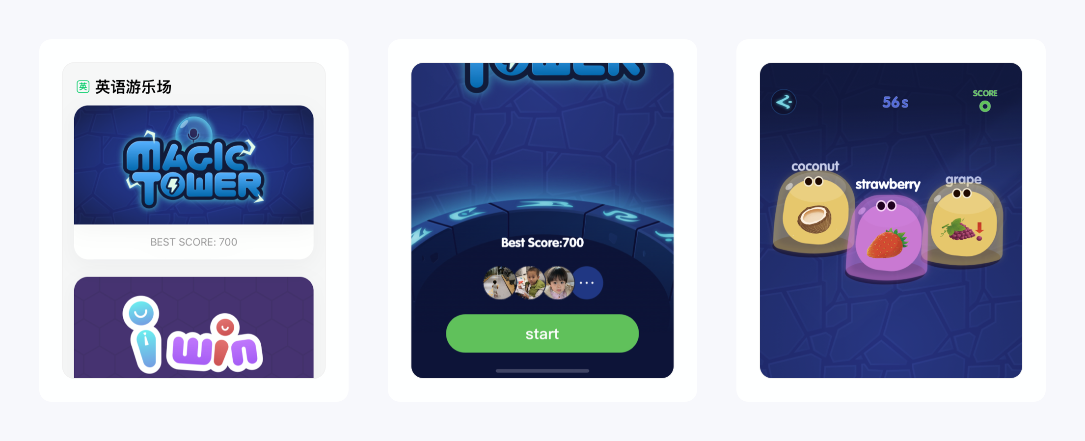 「周末游乐场」就是娱乐小游戏,在每周末会以课程的形式的发布,儿童可以通过精美的小游戏一边学习一边娱乐,不仅可以劳逸结合,还可以提升用户活跃度。