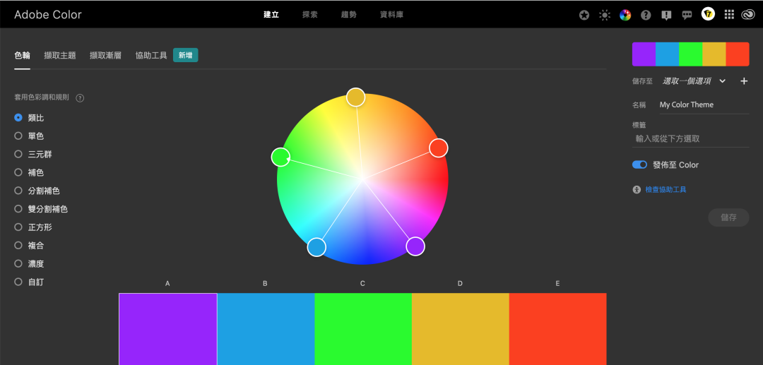 网址:https://color.adobe.com/zh/create/color-wheel