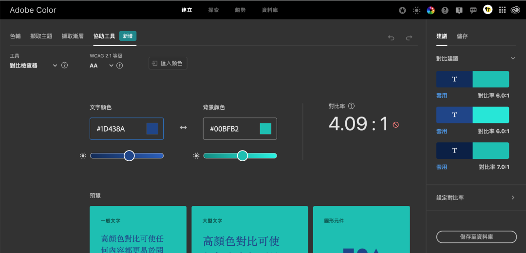 你可以通过色值选取颜色,文字颜色和背景颜色可互换。根据对比率,对比率越高越适合阅读,应当符合WCAG标准。(WCAG是一个无障碍指南)