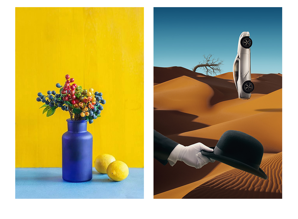 对比强度大的色彩,调整颜色面积,产生视觉对焦效果。