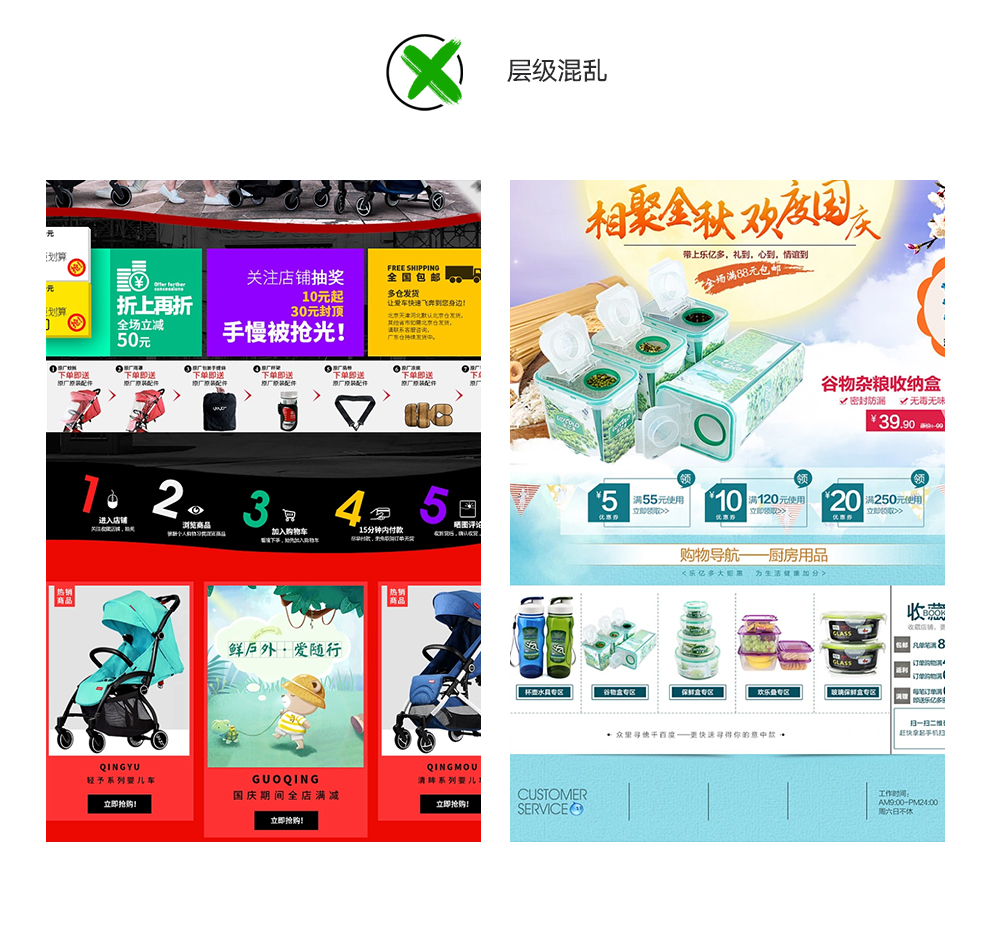 焦点无序,画面混乱,主次不分,信息传达不明确。