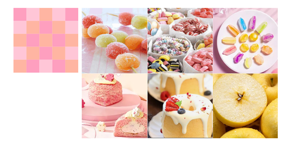 [甜]:暖色中的黄色、橙色最能体现甜的味道感,明度、纯度较高的色彩也有此感觉,如粉红色、象牙白色的冰激凌就较具有甜味感。