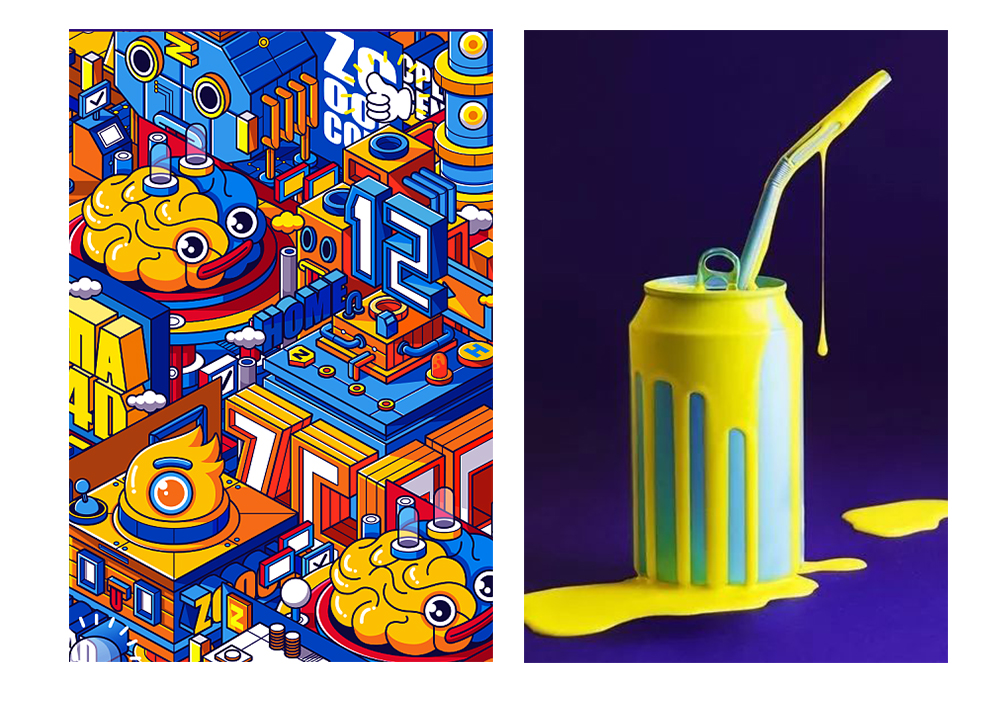 2.艳丽撞色(强烈撞色,可以吸引注意力)