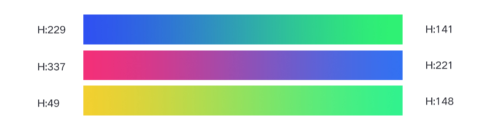 饱和度明度不变,修改色相(色相不要大于120度 否则会变色脏),可以得到好看的双色渐变