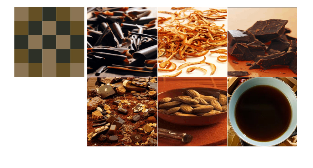 [苦]:以低明度、低纯度且带有灰色的浊色为主,如灰色、黑褐色等,这些颜色易让人联想到咖啡的苦涩。