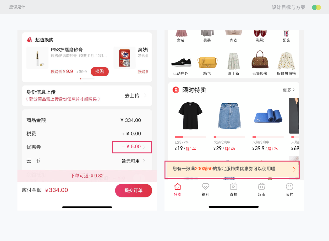 2.当用户在浏览相应品类的模块,查找用户当前有的优惠券进行提示。例如用户之前刚获得服饰类优惠券,那么在用户进入服饰类的界面时进行气泡提示。