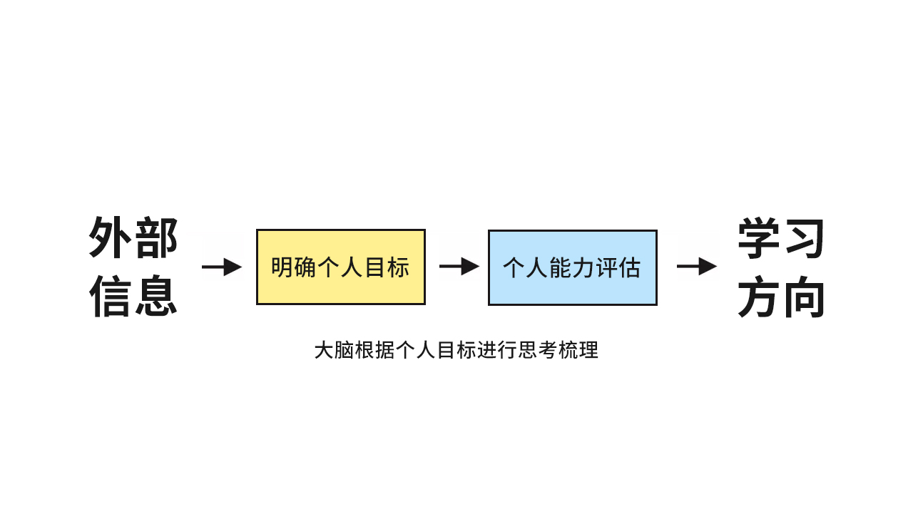先思考,我们为什么要进行信息筛选?目的其实是避免你做无用功,时间有限,你需要把时间精力放在有意义的学习上,而不是看到什么就开始焦虑也要去学,所以我们在学习前期就得清楚自己的个人目标,基本概括为:职场目标(升职赚钱提升核心竞争力)或是人生目标(完善自我成为更理想的自己),如果长期目标暂时没办法规划,那就先规划短期,这一环节是需要花时间去尝试想清楚的,这个就是靶子,没有靶子,每天拉弓有什么意义呢?