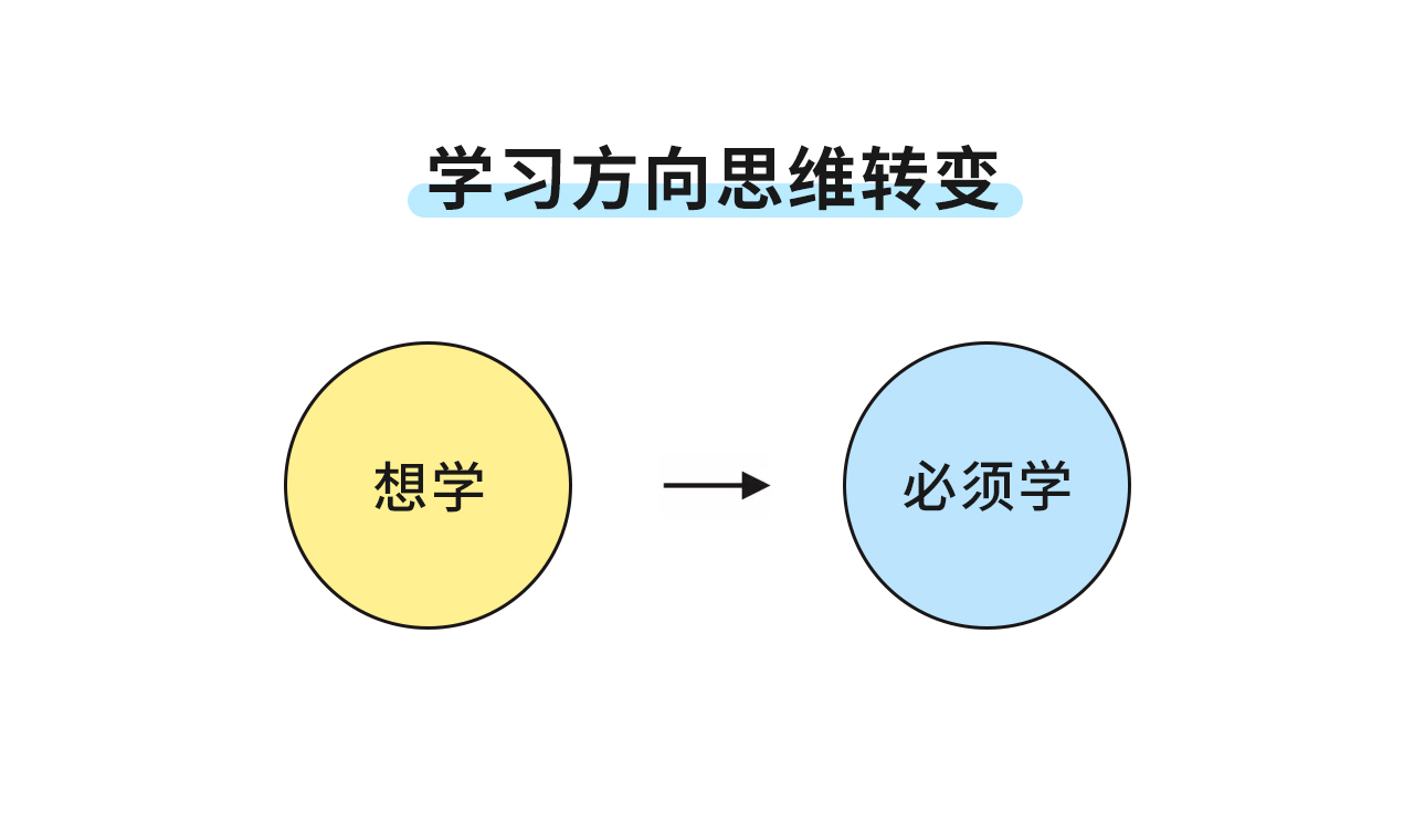 经过这一系列梳理后,大家是不是会有一个明显的思维转变,会从“我想学”的思维转变成“我必须学”,因为“必须学”才可能是你真正现在需要学习的事情。