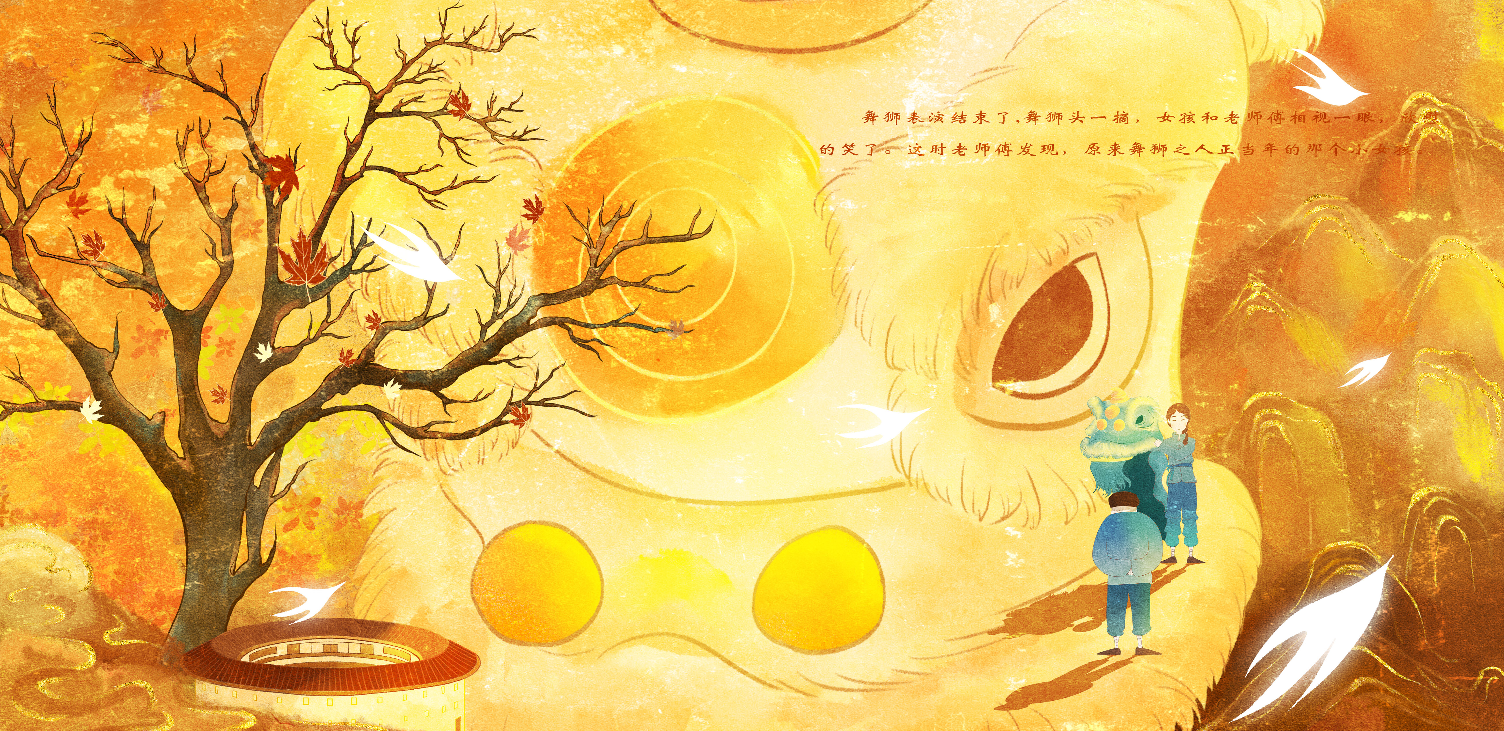 希望能够通过《醒》这部二维动画短片和绘本,激发大家对舞狮这一传统民俗文化的感悟和以及中国风的独特魅力。故事围绕小女孩因为一次机缘巧合来到了老师傅院子里并被舞狮吸引,最终成为了一个舞狮人而展开,这次巧合是一个梦想的起源,是传承的开始,更是文化的延续与觉醒,激励起人们的热血之情,增强民族自豪感和民族凝聚力。