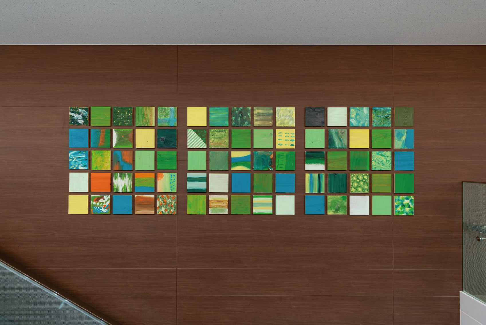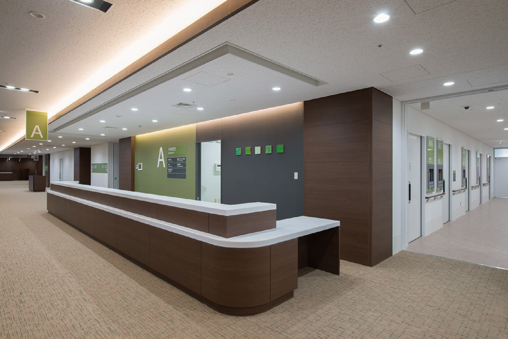 作为地震灾后重建的象征,shimazu公司设计了“岩木之绿”、“岩之青”、“岩之晴”、“岩之空”这四个主题的配色方案,具有文化底蕴,作为环境图形起到了装饰艺术的作用。干净利落的排版模式,提供了一个舒适的医疗空间,有助于缓解访客的焦虑。