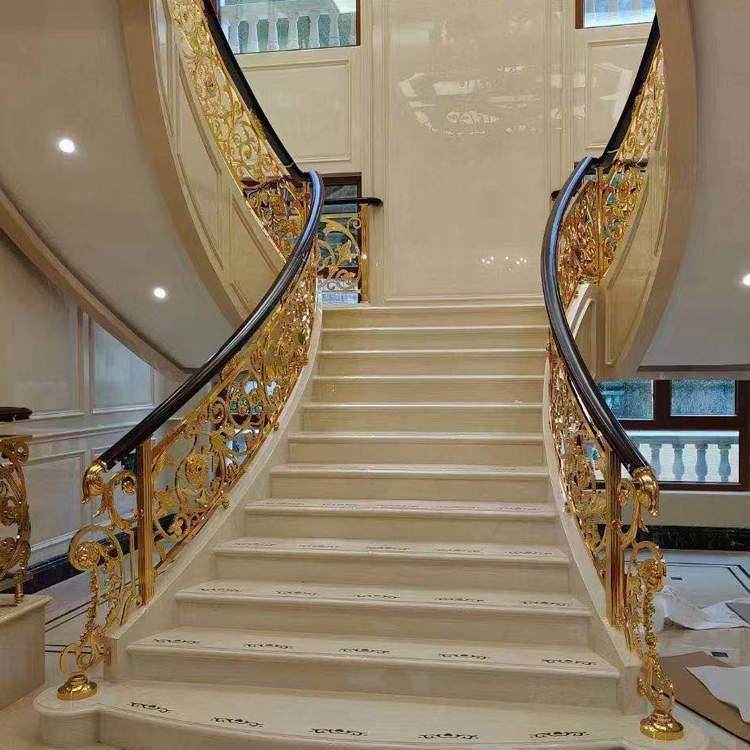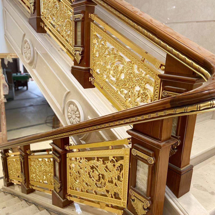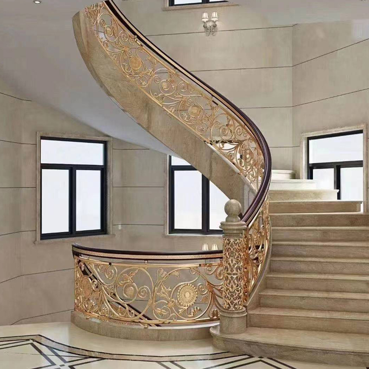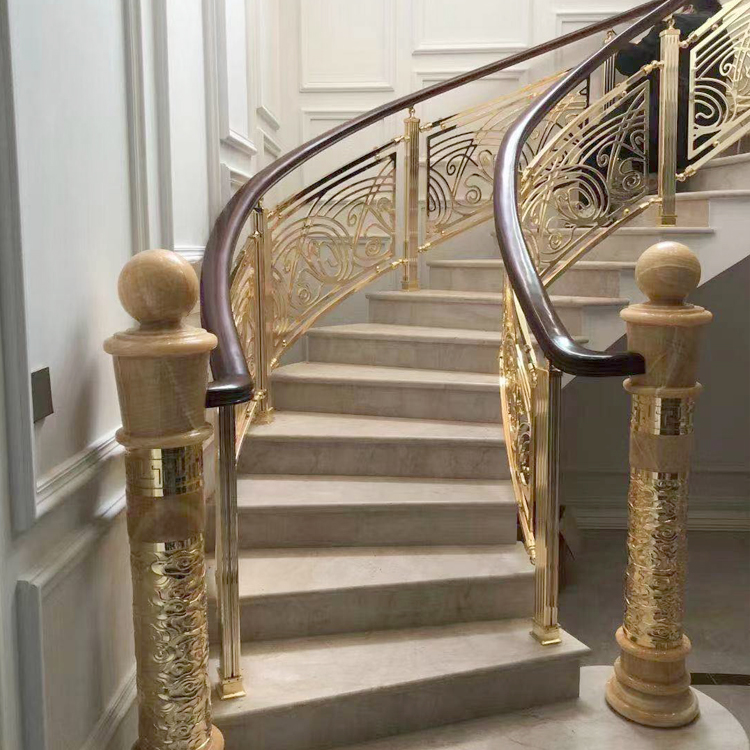 随着我国生活质量大步提升,房地产市场大量别墅和私家别墅纷纷涌现,作为拥有这些豪华住宅的高消费者,为了装饰他们的新居,楼梯型材作为建材行业的新贵,越来越受到这些消费者的青睐。今天我们就来教教大家如何维护铜梯!如果采用金属作为栏杆式铜楼梯扶手,那么在金属的表面做一下处理,以防止金属在冬季时的冰冷不适之感。楼梯的风格要与整个家居的装饰相吻合,如果满室金碧辉煌,唯有楼梯简陋不堪,那就成了败笔。 铜型材的雕花楼梯扶手比较厚实牢固,表面手感细腻。家里装修这种扶手,总会给人一种稳重轻奢大气的感觉。护栏上的花纹可雕刻多种多样,如比较受业主喜欢的有“五谷丰登、郁金香、海洋之星、皇冠花”等款式。颜色上也是多种选择,如:镜面K金、玫瑰金、沙金、钛金、青古铜、红古铜、黄古铜等,还可以根据自己的喜好选择,不像不锈钢那样一成不变。家里要是装修的比较现代风,装铜艺楼梯扶手会显得更美观一些。 在一些的五级的大饭店和一些比较大的私人别墅当中,我们都是可以看到一些铜楼梯扶手的,安装了同楼梯以后,瞬间就能够感觉到档次了的提升,同时安装和使用铜楼梯扶手的好处其实也是非常多的了。
