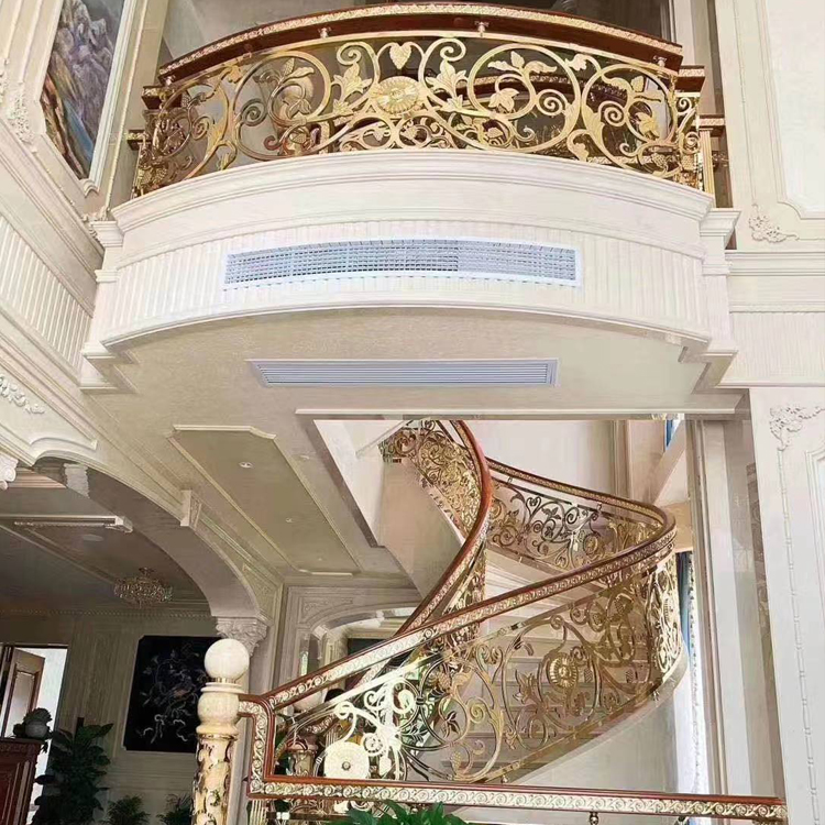 别墅双边铜楼梯护栏 精镀玫瑰金铜扶手厂家
