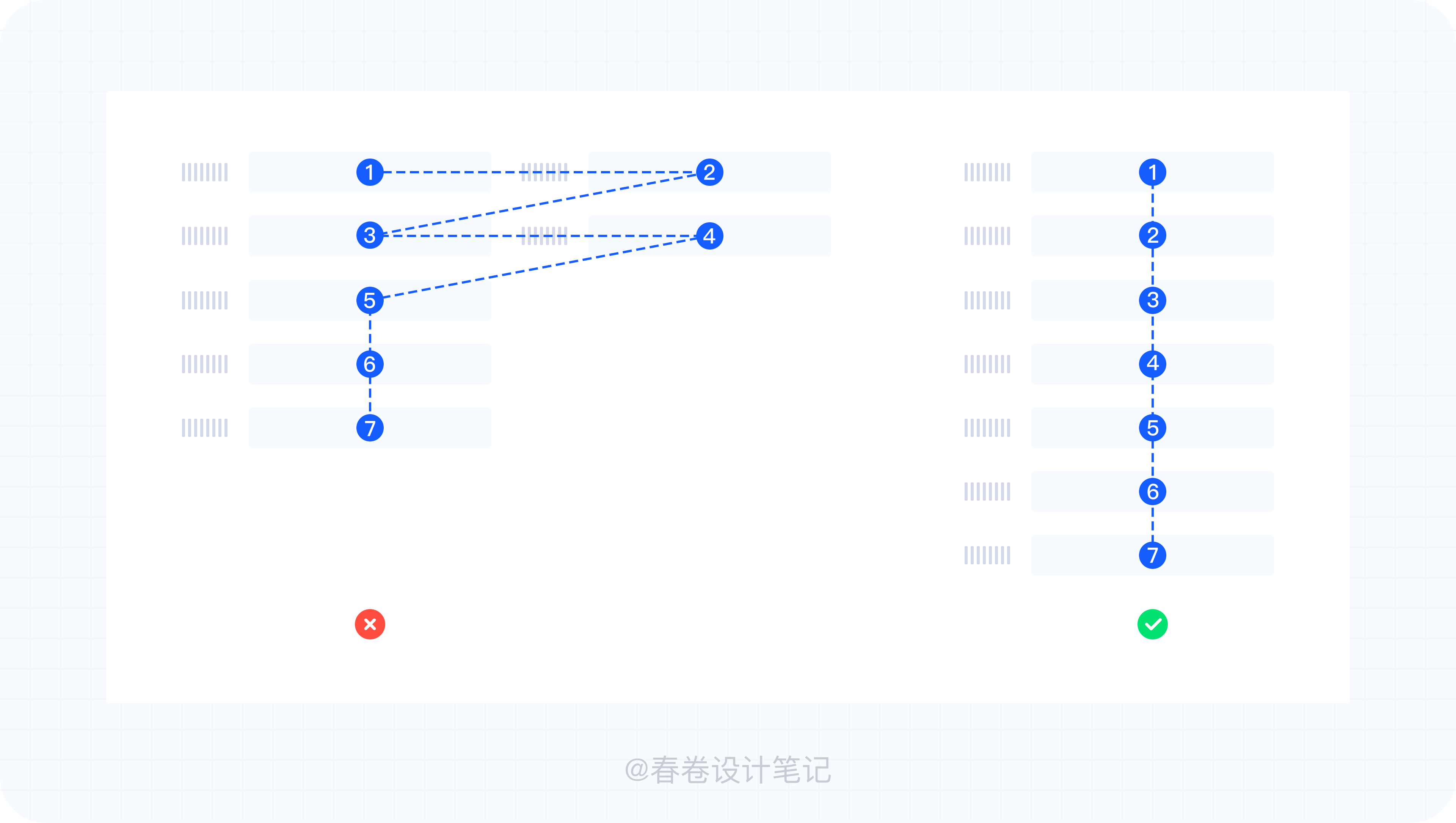 信息能单列展示就不用多列展示,避免用户阅读路径呈“Z”字型,用户的眼睛就要跳来跳去,这样阅读模式的跳跃感较强,用户需要很长时间去理解它,使得用户非常容易忽略一些必填的内容,将信息填入错误或者放弃填写。