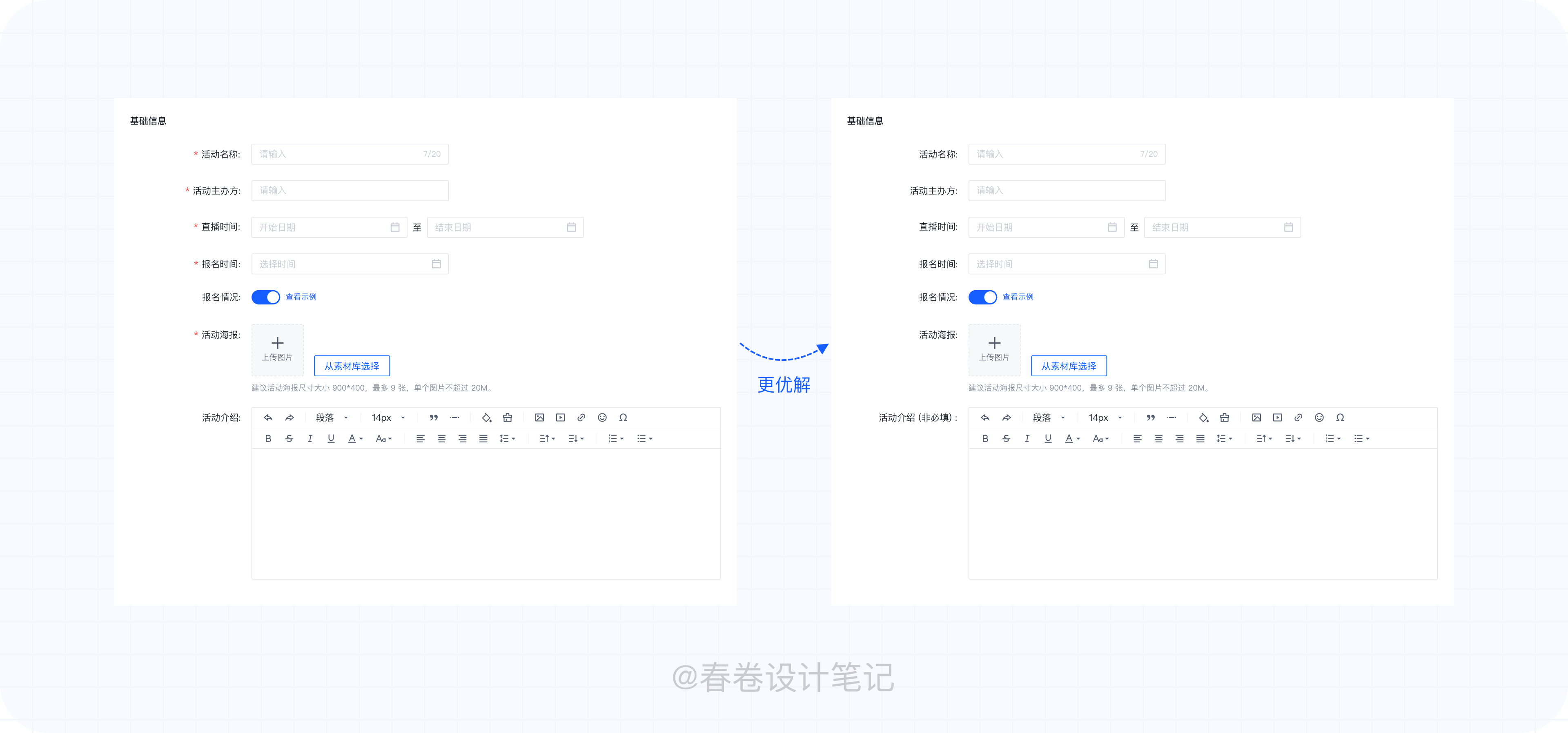 对B端表单设计在实际的业务场景中设计师如何规避和注意一些设计细节,春卷做了归纳和总结,希望对从事B端工作或者对B端知识感兴趣的同学有些帮助,感谢阅读,欢迎交流~