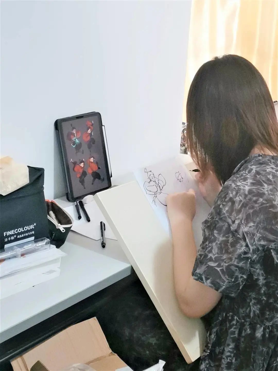 经过了一周的时间,同学们的手绘技法越来越成熟。从开始的肢体、表情、动作形态的临摹训练到现在对人物的角色设计已经开始熟能生巧。