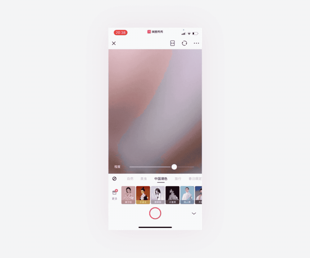 比如 iOS 的相机中,左右滑动切换拍摄模式时,由于前后不同模式之间的页面框架变化较大,切换时会有不同元素的属性变化,如果使用绝对控制和释放后稳定化就会导致切换混乱且拖沓,使用相对控制和释放前稳定化就能避免这个问题。