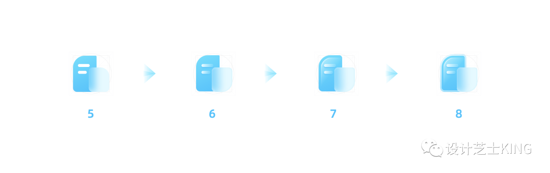 (7)到这里呢其实已经可以算完成了这个图标的设计,但是能不能进一步优化呢?当然可以。在左侧增加一个白色渐变和光影曲线,进一步增强通透,清爽的风格调性
