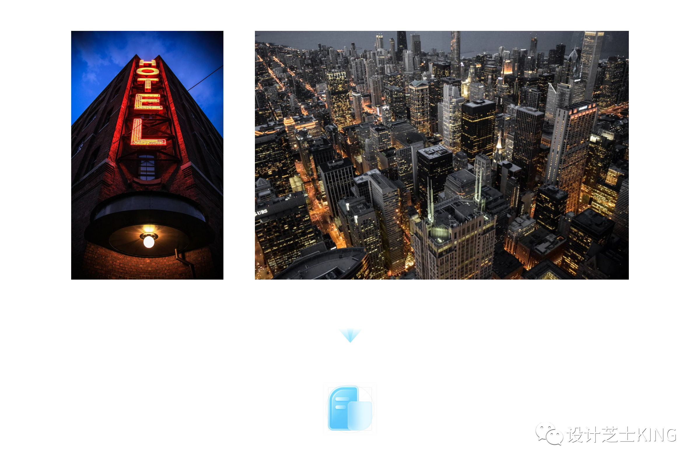 然后将这些实物形象进行简化,具象化,几何化;删除无用细节,化繁为简,提取他们的主要特征,保证简化后图形的辨识度。最终就得到了类似于酒店楼房剪影的极简图形