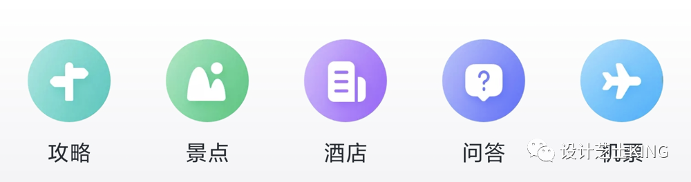 本次优化的飞猪金刚区图标在第二步的绘制图标阶段就已经确定了渐变面性的图标风格,因此整套图标都是沿用这一风格,保证了类型统一