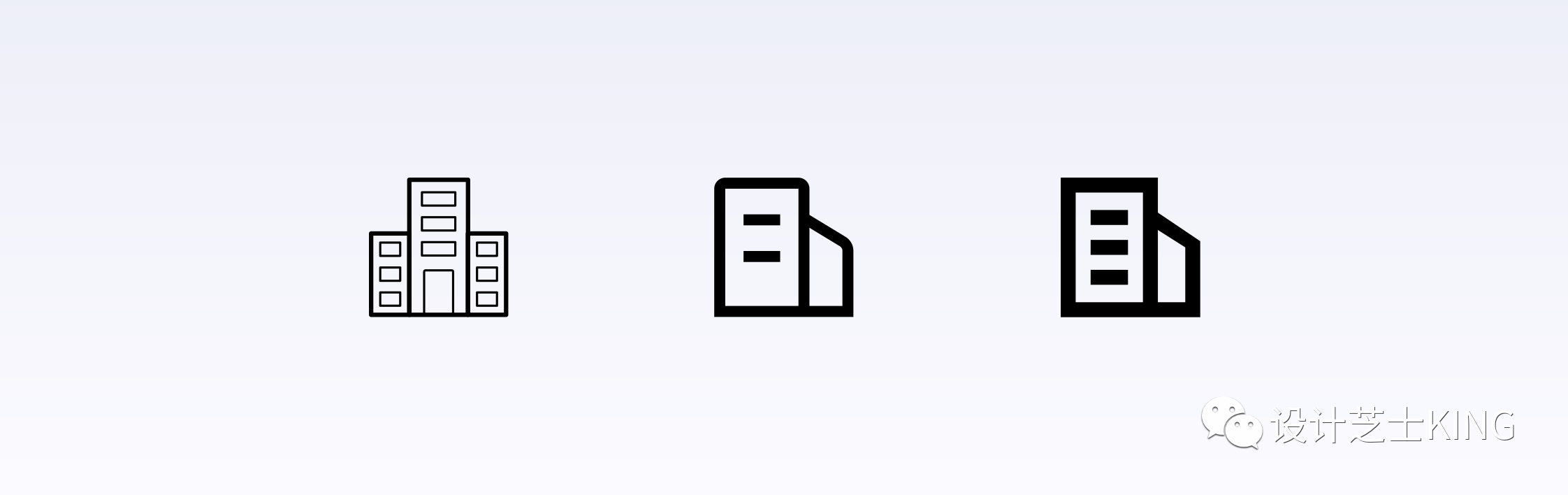 这里依然拿“酒店”图标来讲解,酒店图标的绘制过程就是用酒店最具代表性的高楼图片具象化,抽象化而来的,从源头上就有明确的辨识点,能够清晰直接的表达出该图形所想表达的意思