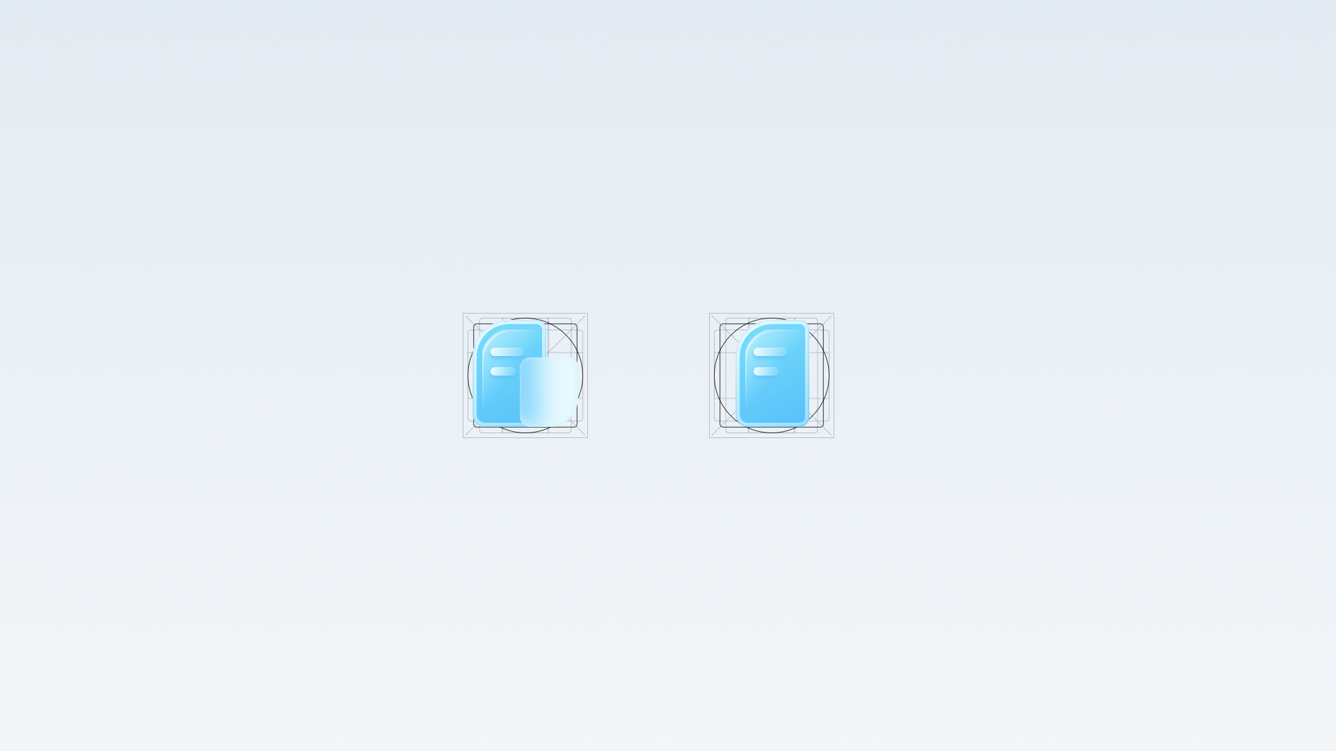 这样整体来看两者联系更为紧密,和谐,统一;两个横杠用纯白色在整个图标中有些过分凸显;因此通过渐变蓝色的方式使其融入整体的同时不失辨识度