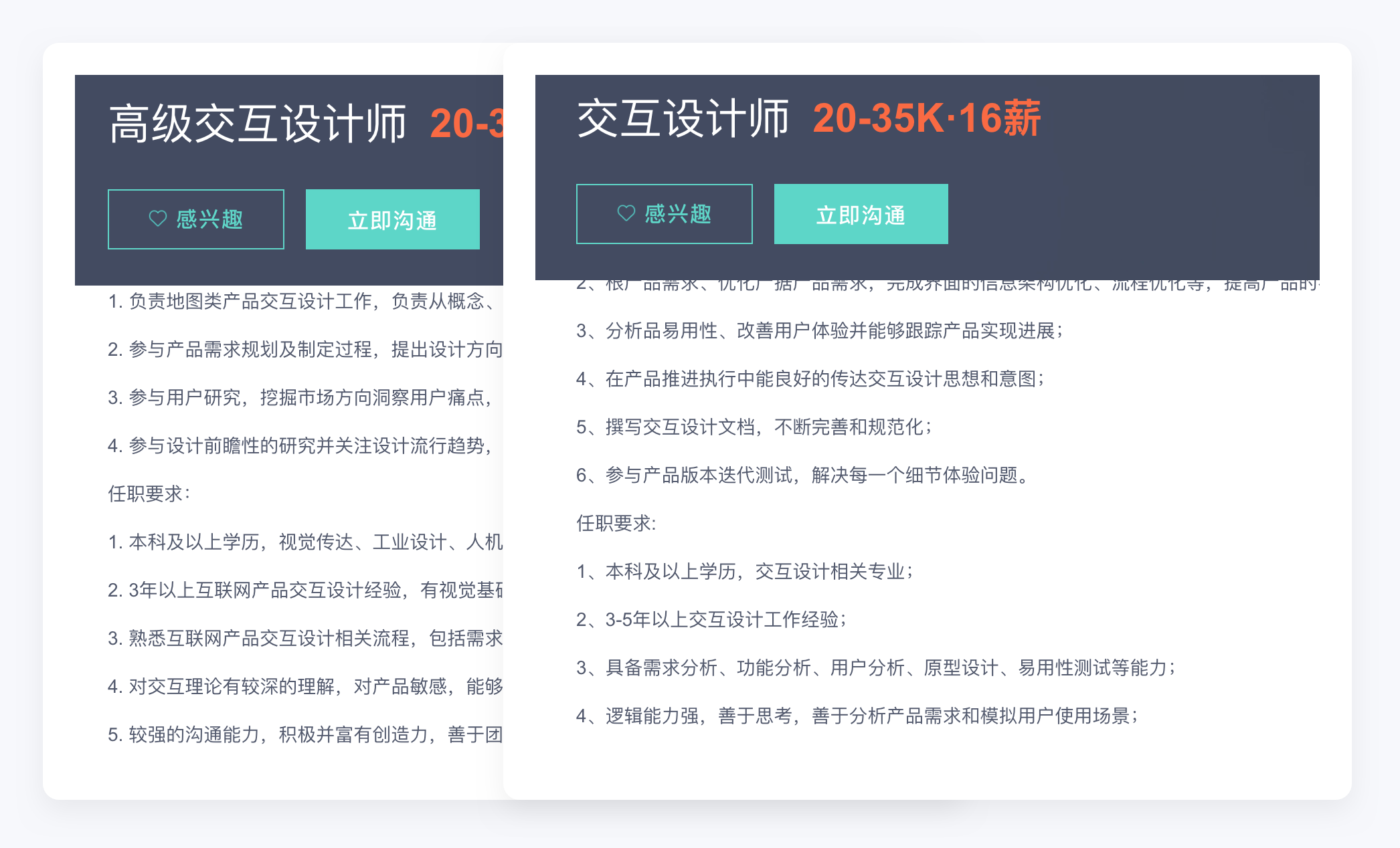 这一节其实挺有意思,作者他分析了阿里巴巴、腾讯、网易等大厂的20多个交互设计师招聘岗位。从岗位描述和岗位需求的分析,他如此总结道: