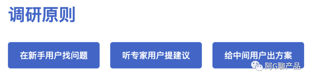 记住一个调研原则:“在新手用户找问题,听专家用户提建议,给中间用户出方案”