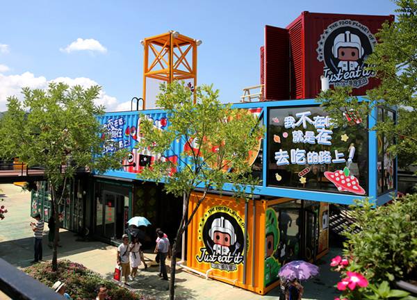 由于集装箱是属于模块化组装,集装箱可以通过箱体的堆叠、拼接、错位等组合方式进行搭建,各式各样的造型,在外观上就会给人巨大的视觉冲击。再加上外表个性的喷漆彩绘,非常符合当代年轻人的审美追求。
