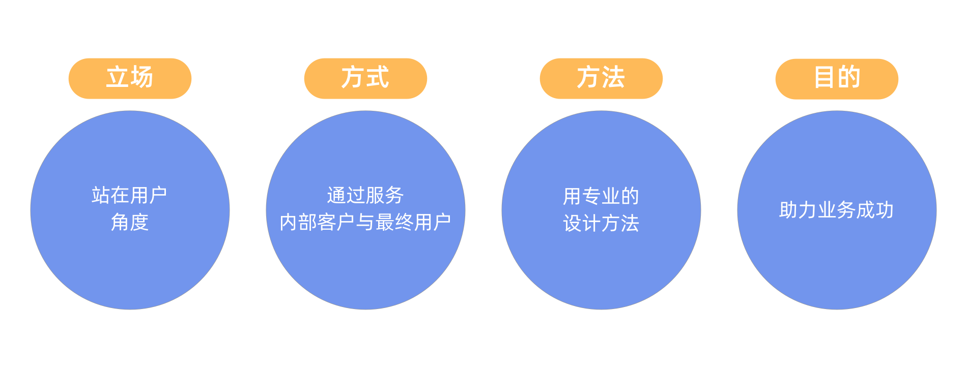 设计观决定设计方法论, 我们要讨论方法论就必须先明确设计观. 对于我们设计师来说,设计观就是我们的使命、职责是什么,1688的负责人汪芳进对他们的设计部分职责总结是“在公司中作为职能部门的UED团队,需要站在用户的角度思辨业务,通过服务内部客户进而服务我们的最终用户,用设计专业帮助业务成功,与业务一起成长”更落地一些的说法就是要明确我们的岗位职责,确立我们的岗位目标. 岗位目标确立的有价值,那设计工作才能有价值.岗位目标不明确,那设计的工作价值就会被忽视. 1688负责人对自己UED团队的岗位目标就是站在用户立场,以服务内部客户的方式,用专业的设计方法,来达到助理业务成功的目的.我们设计师要先明确自己设计目标,确定自己岗位的职责,才可以找到对应的设计思考方法和设计执行方法.