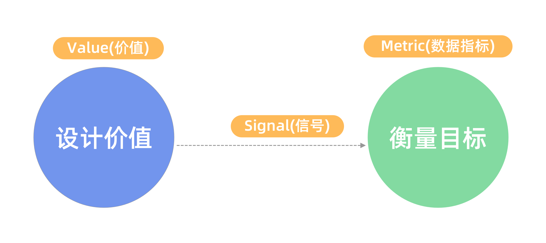 如何设定衡量指标呢?设定衡量指标时应遵循VSM的推导思路.具体含义是,一旦设计目标中的设计价值得以实现,就一定会有相应的现象发生或信号出现,而有了现象或信号,根据上面的理念,我们就应该能够找到可以表述和衡量它们的数据指标(Metric),并以此反映设计价值的变化。这个VSM推导思路的理论基础来源于Google在其HEART模型的介绍文档中。