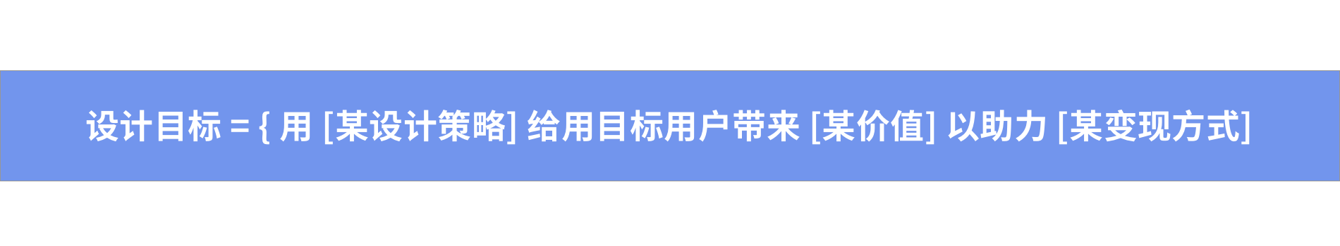 价值实现策略是我们设计目标思考的源头,我们可以利用哪些专业的设计知识辅助价值实现?我们可以实施哪些设计手段落实实现策略.我们用简单的公式来表达一下.