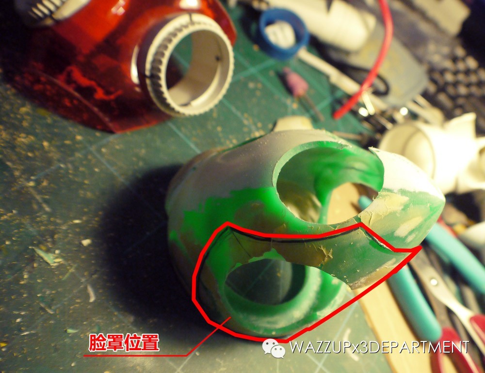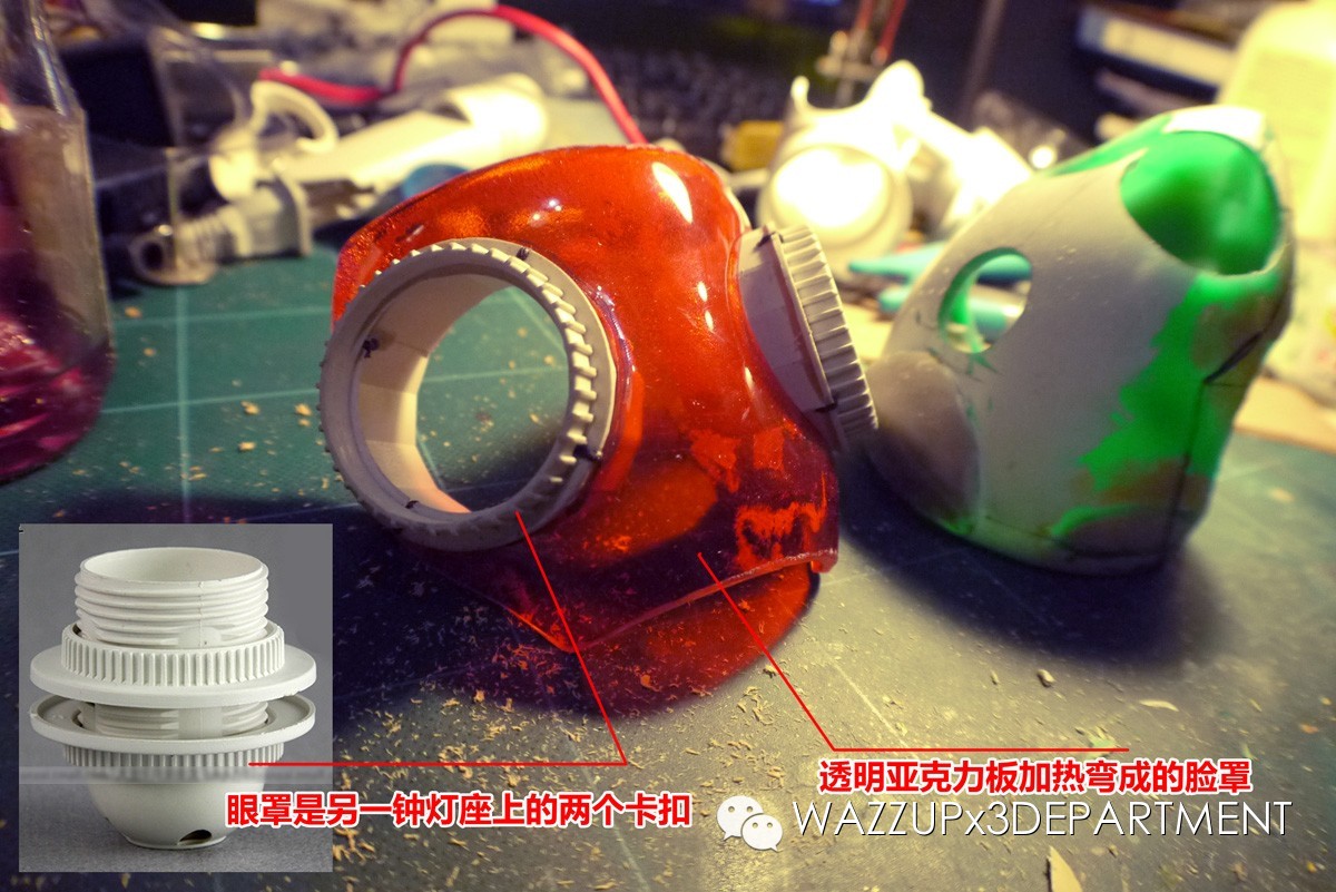 眼罩是另一个灯座上的两个卡扣,用亚克力板加热弯成脸罩形状