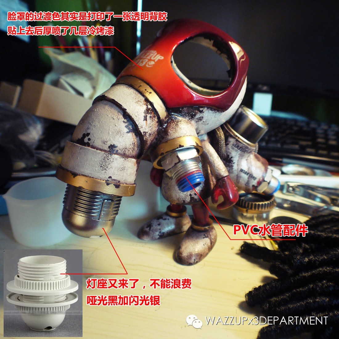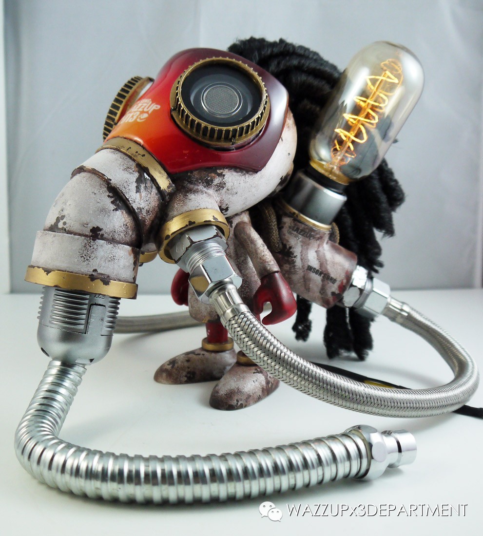 加上一些五金店的个种配件,眼是水龙头的头,水管,蛇管,最后装上脏辫头发,完成啦