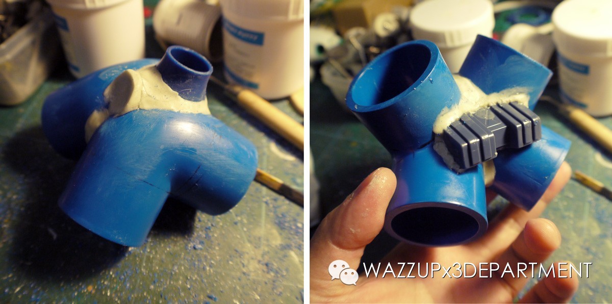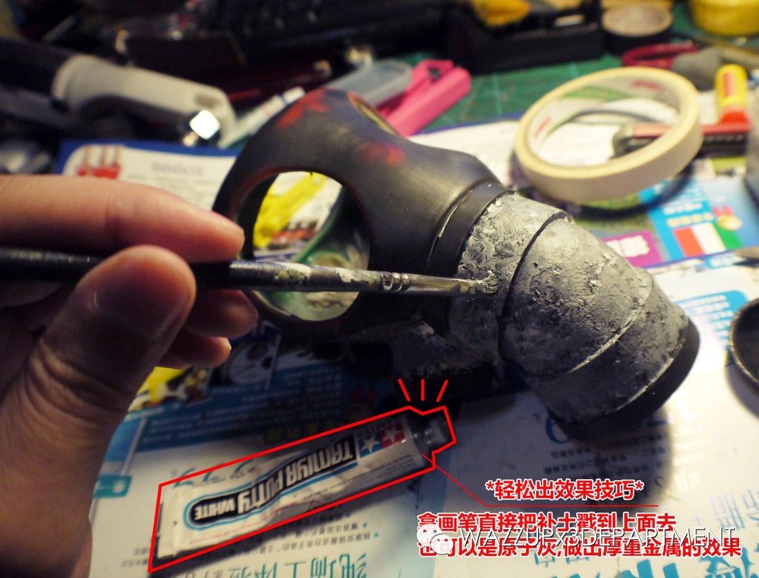 重点来了,拿画笔直接把补土戳到上面去,轻松做出厚重的金属质感(原子灰也行,不过要把握好时间)