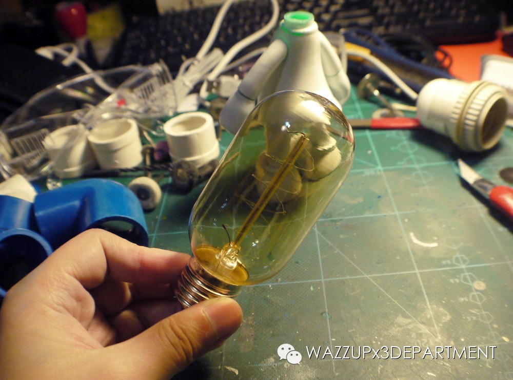 喷上哑光黑粗装一次,接上电线确定灯是可以亮的