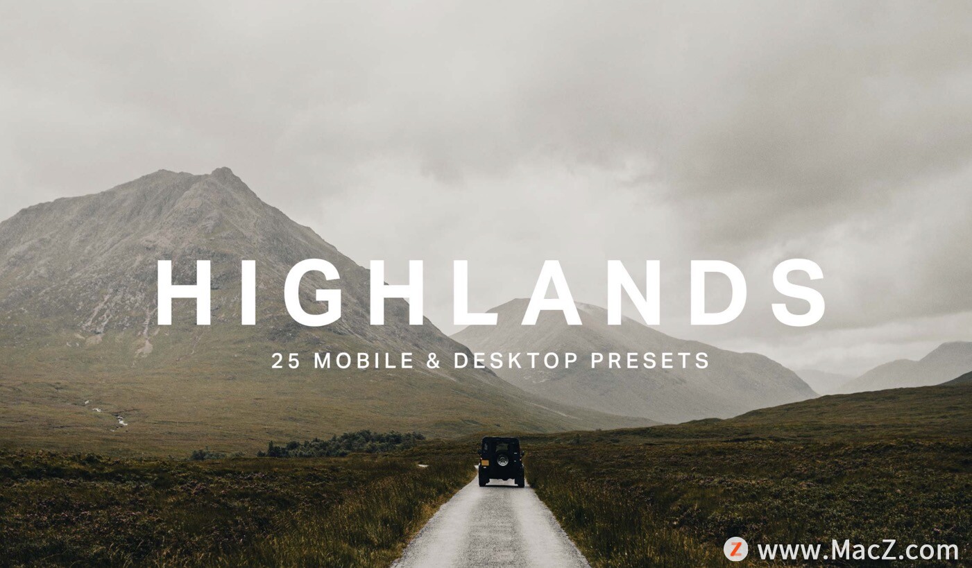 25 个山地景观lr和lut预设包含25 个预设,旨在为您的照片提供喜怒无常、大气的外观,包括不饱和的天空、棕褐色和猎人绿色。它们非常适合拍摄山脉、自然和雾气的风景照片。