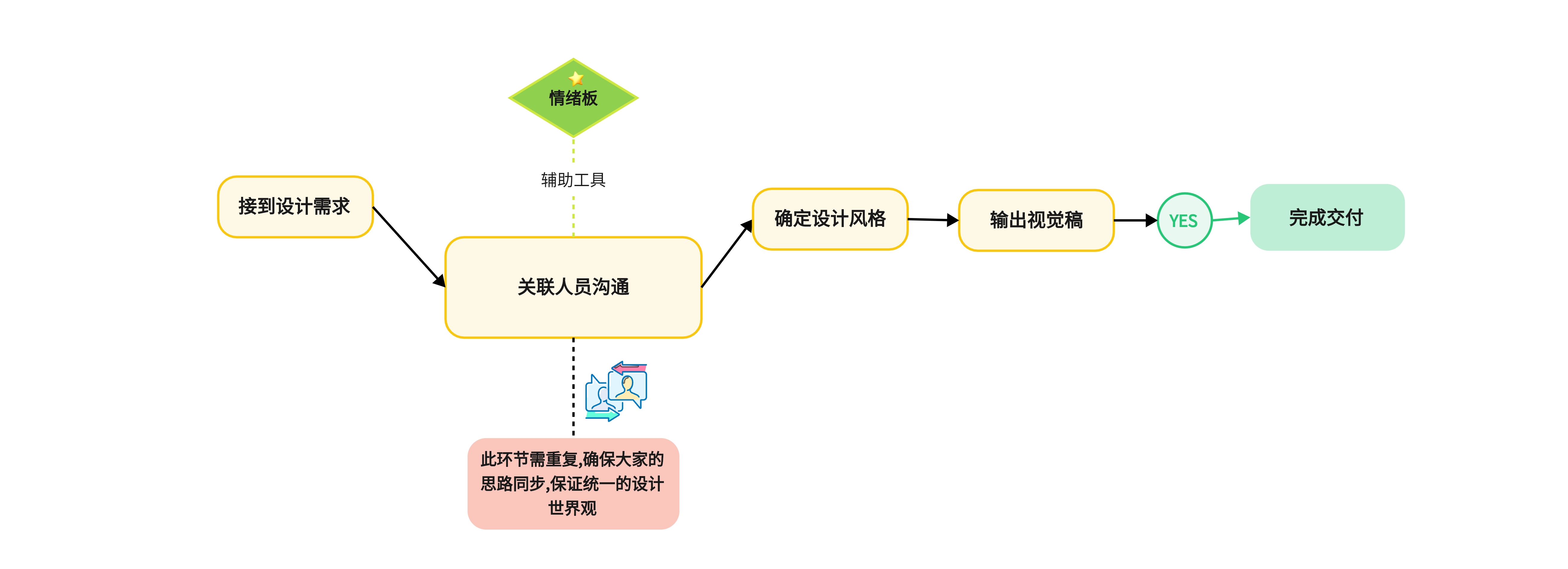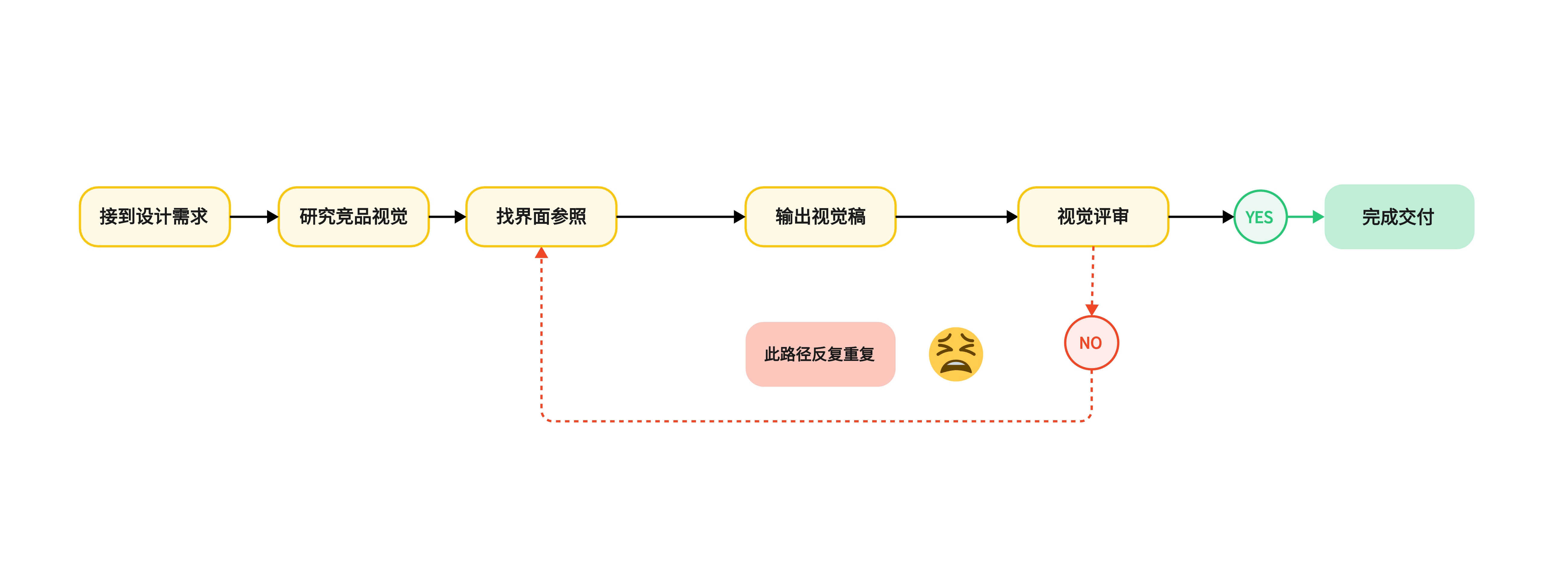 因为我们没有一个科学的设计思考路径.在接到文字描述的需求后,视觉风格的定义通常是依赖竞品视觉和相关设计参照带来的灵光乍现式的创意.在设计结果输出前,我们往往是“封闭性”的进行创作.很多设计师习惯性的直接将视觉结果呈现给关联人员,单方面的去组织和阐述设计理念.产品经理、运营或者老板往往是最后的阶段才介入,他们直接对结果进行审核.中间沟通环节是缺失的.作为整个业务链的一环,我们的设计工作是与上下游有点割裂的.