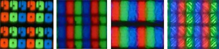 看一下别人拍的资料:显微镜下的显示屏像素(不同屏幕)。