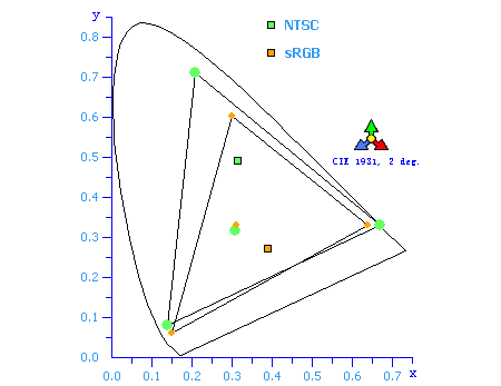 那么有没有行业标准?有,比如常用的行业标准NTSC(电视)和sRGB(电脑)~