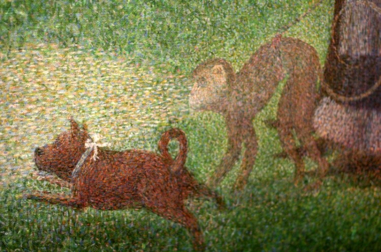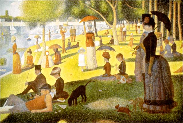 先休息一下,欣赏一下世界名画,修拉的《大碗岛的星期天下午》。