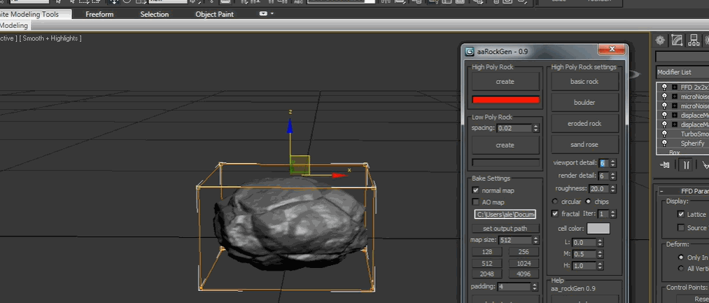 如果你需要处理包含大量岩石的外部景观项目时,就可以尝试一下这个插件。使用这个插件可以通过参数自定义岩石的形状和种类,同时还有高模和低模的选项、设置预设加快工作流程。