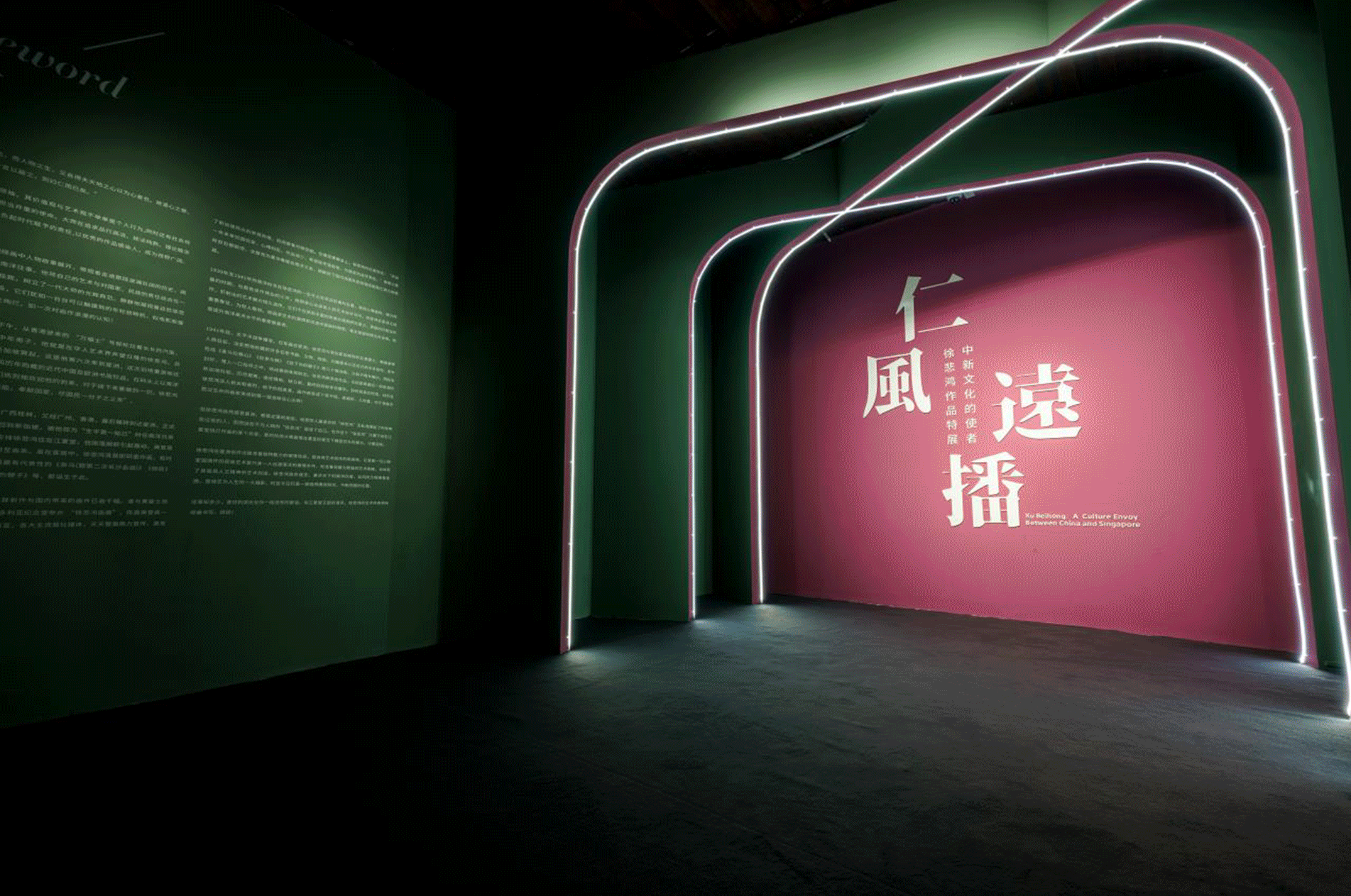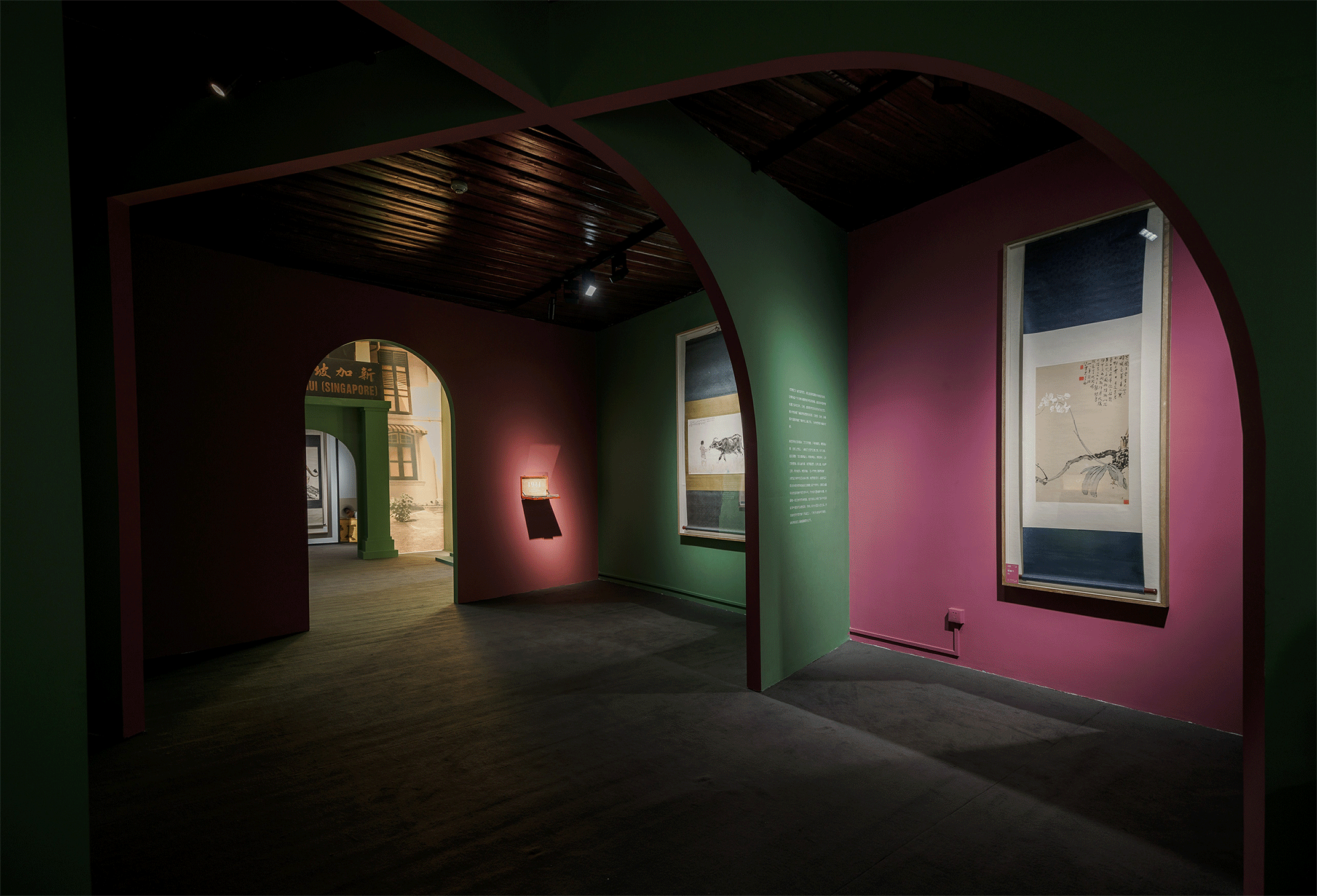 从香港驶来的“万福士”号邮轮拉着长长的汽笛,缓缓开进新加坡港,从船上走下一中年男子,他就是在华人艺术界声望日隆的徐悲鸿。下船后,望向码头对面西式拱形窗特色的建筑,因此在这个通道提取拱窗元素作为到达展厅的过渡空间,同时增加打卡的趣味性。